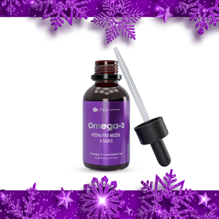 ALGAE OMEGA-3 obsahuje vysoce koncentrovaný olej z mořských řas s optimálním poměrem EPA a DHA. Tyto esenciální mastné kyseliny hrají klíčovou roli pro zdraví kardiovaskulárního systému, mozku i očí. Díky triglyceridové formě má olej výbornou vstřebatelnost a je šetrný k trávení. Směs je doplněna o organický MCT olej a přírodní tokoferoly pro lepší stabilitu a účinnost.