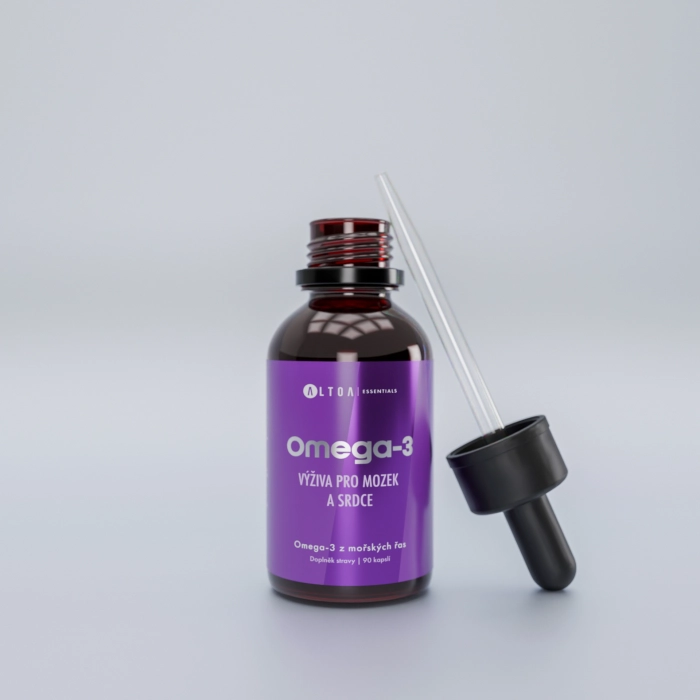 ALGAE OMEGA-3 obsahuje vysoce koncentrovaný olej z mořských řas s optimálním poměrem EPA a DHA. Tyto esenciální mastné kyseliny hrají klíčovou roli pro zdraví kardiovaskulárního systému, mozku i očí. Díky triglyceridové formě má olej výbornou vstřebatelnost a je šetrný k trávení. Směs je doplněna o organický MCT olej a přírodní tokoferoly pro lepší stabilitu a účinnost.