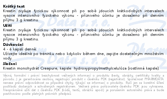 Kreatin zvyšuje fyzickou výkonnost při po sobě jdoucích krátkodobých intervalech vysoce intenzivního fyzického výkonu - příznivého účinku je dosaženo při denním příjmu 3 g kreatinu.