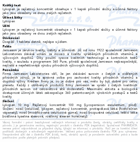 Lykopen je rajčatový koncentrát obsahuje v 1 kapsli přírodní složky a účinné faktory jako jsou obsaženy ve dvou zralých rajčatech.