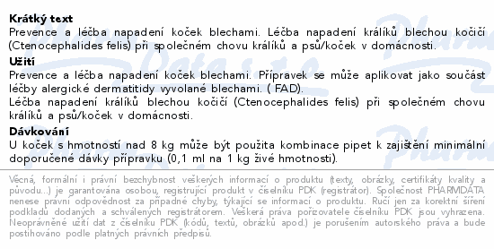 Prevence a léčba napadení koček blechami. Léčba napadení králíků blechou kočičí (Ctenocephalides felis) při společném chovu králíků a psů/koček v domácnosti.