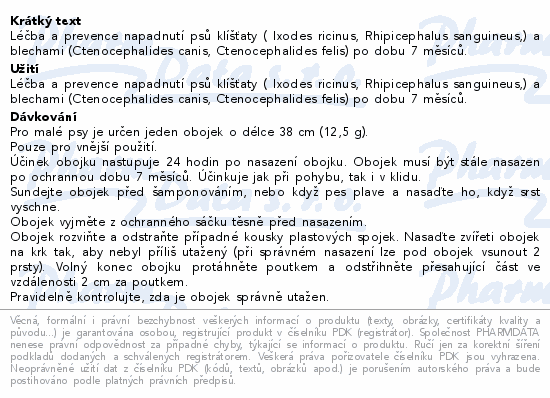 Léčba a prevence napadnutí psů klíšťaty ( Ixodes ricinus, Rhipicephalus sanguineus,) a blechami (Ctenocephalides canis, Ctenocephalides felis).
