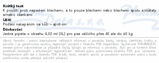 K použití proti napadení blechami, a to pouze blechami nebo blechami spolu s klíšťaty a/nebo všenkami.