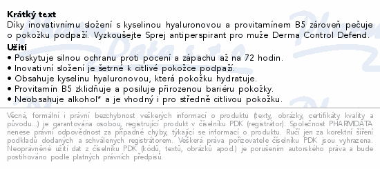 Díky inovativnímu složení s kyselinou hyaluronovou a provitamínem B5 zároveň pečuje o pokožku podpaží. Vyzkoušejte Sprej antiperspirant pro muže Derma Control Defend.
