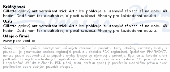 Gillette gelový antiperspirant stick Artic Ice pohlcuje a uzamyká zápach až na dobu 48 hodin. Dodá vám tak dlouhotrvající pocit svěžesti. Vhodný pro každodenní použití.