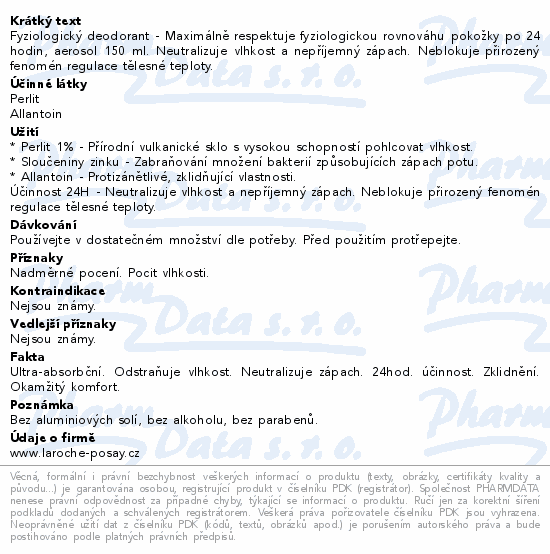 Fyziologický deodorant - Maximálně respektuje fyziologickou rovnováhu pokožky po 24 hodin, aerosol 150 ml. Neutralizuje vlhkost a nepříjemný zápach. Neblokuje přirozený fenomén regulace tělesné teploty.