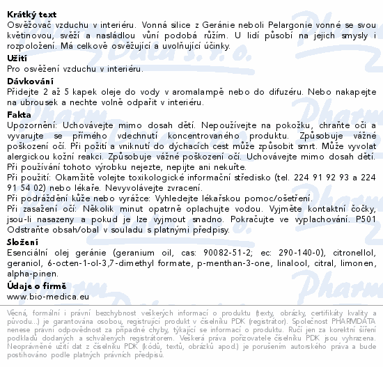 Biomedica Esenciální olej Geránie 10ml