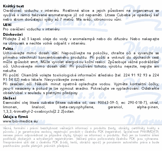 Biomedica Esenciální olej Litsea Cubeba 10ml