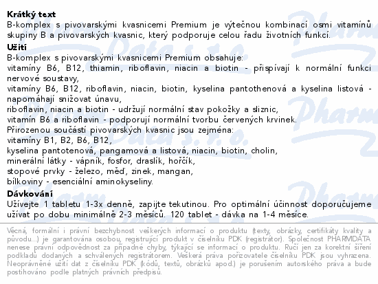 B-komplex s pivovarskými kvasnicemi Premium je výtečnou kombinací osmi vitamínů skupiny B a pivovarských kvasnic, který podporuje celou řadu životních funkcí.