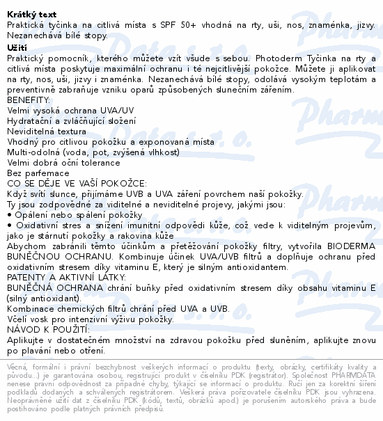 Photoderm Tyčinka na rty a citlivá místa SPF 50+ je maximální ochrana proti UVA a UVB záření, určená na místa nejvíce citlivá na sluneční záření: nos, uši, jizvy, znaménka.