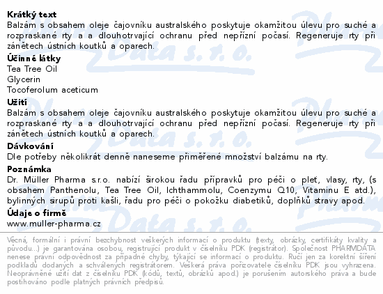 DR.MULLER Tea Tree Oil balzám na rty10ml