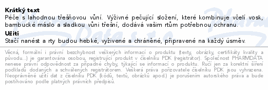 Péče s lahodnou třešňovou vůní. Výživné pečující složení, které kombinuje včelí vosk, bambucké máslo a sladkou vůni třešní, dodává vašim rtům potřebnou ochranu.