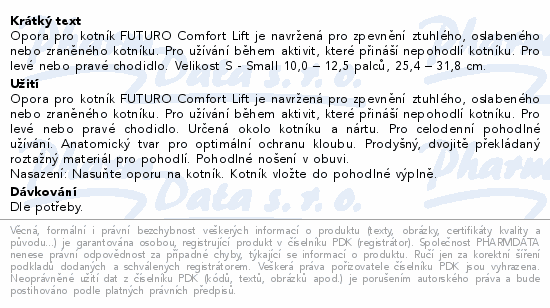 Opora pro kotník FUTURO Comfort Lift je navržená pro zpevnění ztuhlého, oslabeného nebo zraněného kotníku. Pro užívání během aktivit, které přináší nepohodlí kotníku. Pro levé nebo pravé chodidlo. Velikost S - Small 10,0 – 12,5 palců, 25,4 – 31,8 cm.
