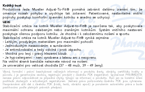 Produktová řada Mueller Adjust-To-Fit® pomáhá zabránit dalšímu zranění tím, že omezuje rozsah pohybu a urychluje tak zotavení. Patentované, nastavitelné vnitřní popruhy poskytují komfortní zpevnění kotníku a snadno se uchycují.