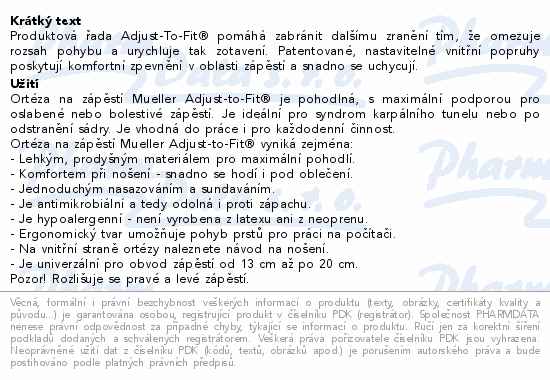 Produktová řada Adjust-To-Fit® pomáhá zabránit dalšímu zranění tím, že omezuje rozsah pohybu a urychluje tak zotavení. Patentované, nastavitelné vnitřní popruhy poskytují komfortní zpevnění v oblasti zápěstí a snadno se uchycují.