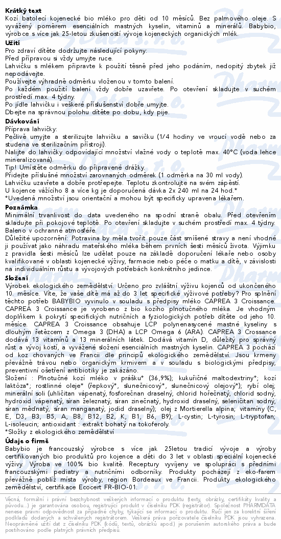 Kozí batolecí kojenecké bio mléko pro děti od 10 měsíců. Bez palmového oleje. S vyvážený poměrem esenciálních mastných kyselin, vitaminů a minerálů. Babybio, výrobce s více jak 25-letou zkušeností vývoje kojeneckých organických mlék.