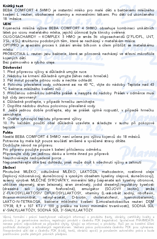 BEBA COMFORT 4 5HMO je instantní mléko pro malé děti s bakteriemi mléčného kvašení L. reuteri, obohacené vitamíny a minerálními látkami. Pro děti od ukončeného 18. měsíce.