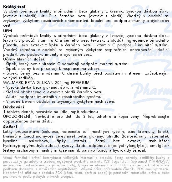 Výrobek prémiové kvality s přírodními beta glukany z kvasnic, vysokou dávkou šípku (extrakt z plodů), vit. C a černého bezu (extrakt z plodů). Vhodný v období se zvýšeným výskytem respiračních onemocnění. Ideální pro podporu imunity a dýchacích cest.