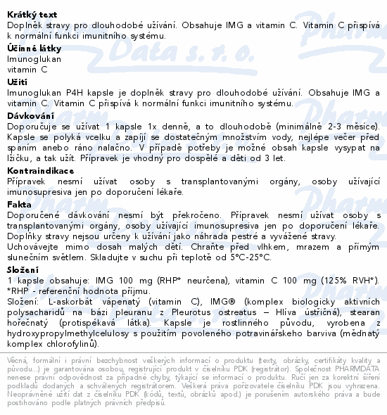 Doplněk stravy, obsahuje Imunoglukan a vitamin C, který přispívá k normální funkci imunitního systému.
