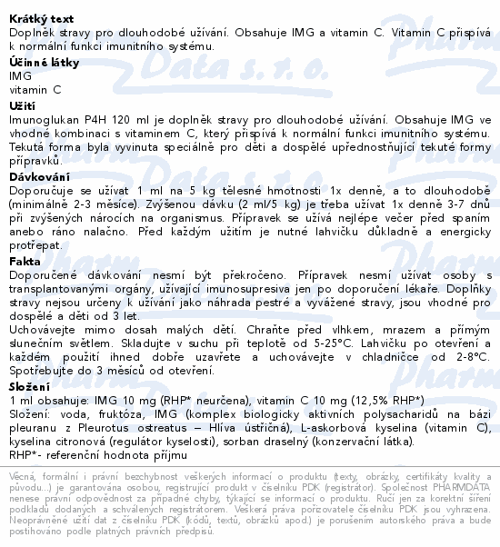 Doplněk stravy, obsahuje Imunoglukan® a vitamin C, který přispívá k normální funkci imunitního systému.