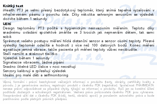 iHealth PT3 je velmi přesný bezdotykový teploměr, který snímá tepelné vyzařování v infračerveném pásmu z povrchu čela. Díky několika sehraným senzorům se výsledek dozvíte během 1 sekundy.
