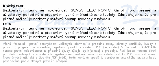 Bezkontaktní teploměr společnosti SCALA ELECTRONIC GmbH pro přesné a uživatelsky pohodlné a především rychlé měření tělesné teploty. Zdůrazňujeme, že pro přesné měření je nezbytný správný postup uvedený v návodu.