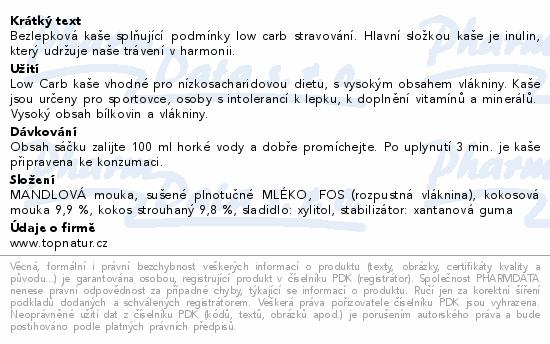 Bezlepková kaše splňující podmínky low carb stravování. Hlavní složkou kaše je inulin, který udržuje naše trávení v harmonii.
