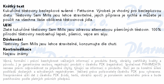 Kukuřičné těstoviny bezlepkové sušené - Fettucine. Výrobek je vhodný pro bezlepkovou dietu. Těstoviny Sam Mills jsou lehce stravitelné, jejich příprava je rychlá a můžete je použít na všechna Vaše oblíbená těstovinová jídla.