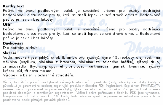 Pečivo ve tvaru podlouhlých bulek je speciálně určeno pro osoby dodržující bezlepkovou dietu nebo pro ty, kteří se snaží lepek ve své stravě omezit. Bezlepkové pečivo je navíc i bez laktózy.