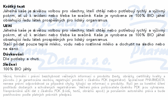 Jáhelná kaše je skvělou volbou pro všechny, kteří chtějí nebo potřebují rychlý a výživný pokrm, ať už k snídani nebo třeba ke svačině. Kaše je vyrobena ze 100% BIO jáhel obsahující řadu látek prospěšných pro lidský organismus.