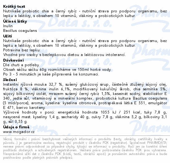 Nutrikaše probiotic chia a černý rybíz - nutriční strava pro podporu organismu, bez lepku a laktózy, s obsahem 10 vitaminů, vlákniny a probiotických kultur.