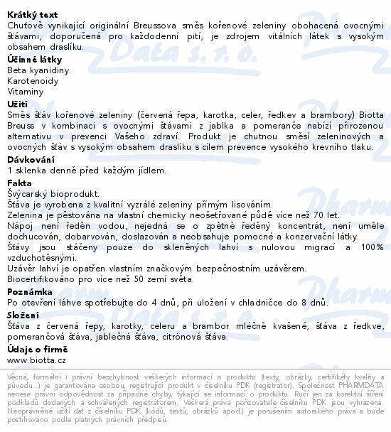 Chuťově vynikající originální Breussova směs kořenové zeleniny obohacená ovocnými šťávami, doporučená pro každodenní pití, je zdrojem vitálních látek s vysokým obsahem draslíku.