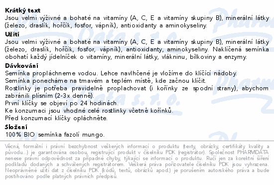 Allnature Semínka na klíčení mungo BIO 100g