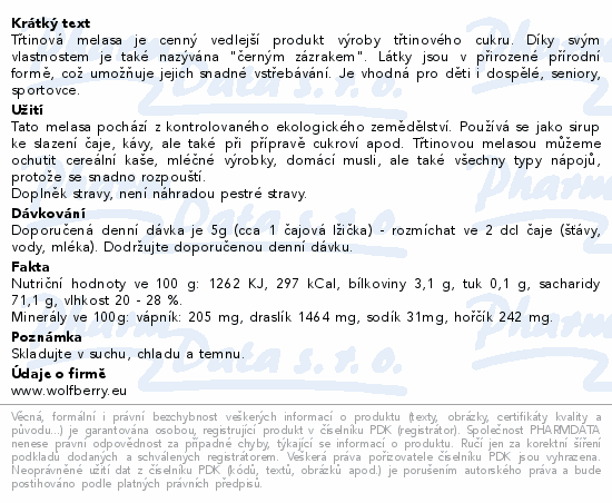 Třtinová melasa je cenný vedlejší produkt výroby třtinového cukru. Díky svým vlastnostem je také nazývána "černým zázrakem". Látky jsou v přirozené přírodní formě, což umožňuje jejich snadné vstřebávání. Je vhodná pro děti i dospělé, seniory, sportovce.