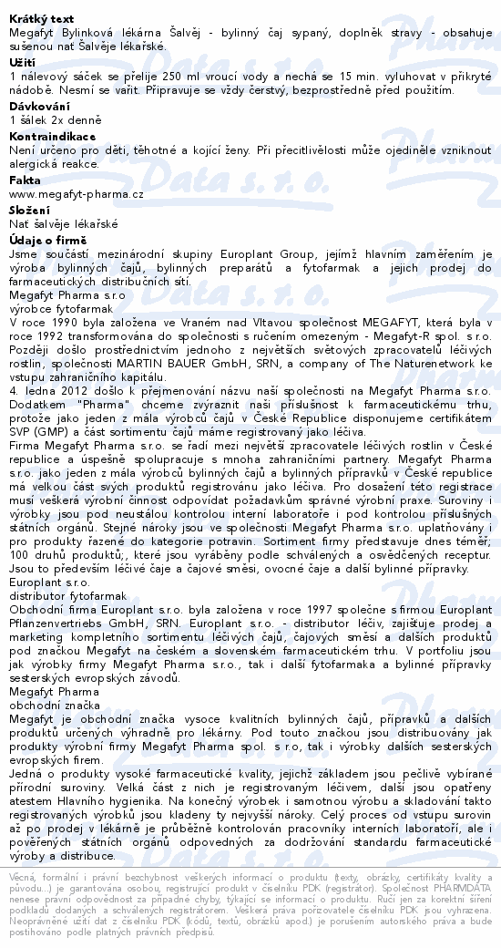 Megafyt Bylinková lékárna Šalvěj - bylinný čaj sypaný, doplněk stravy - obsahuje sušenou nať Šalvěje lékařské.