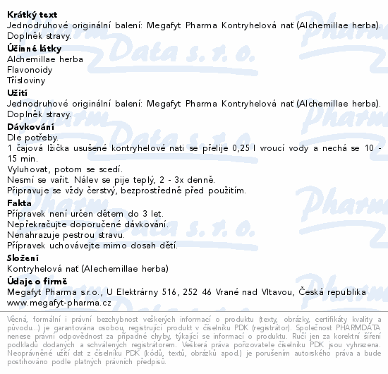 Jednodruhové originální balení: Megafyt Pharma Kontryhelová nať (Alchemillae herba). Doplněk stravy.