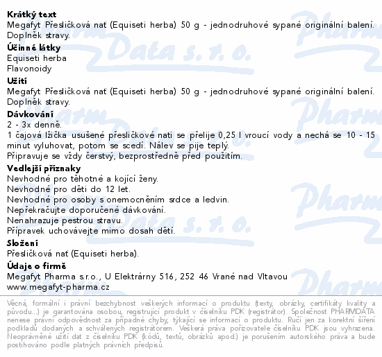 Megafyt Přesličková nať (Equiseti herba) 50 g - jednodruhové sypané originální balení. Doplněk stravy.