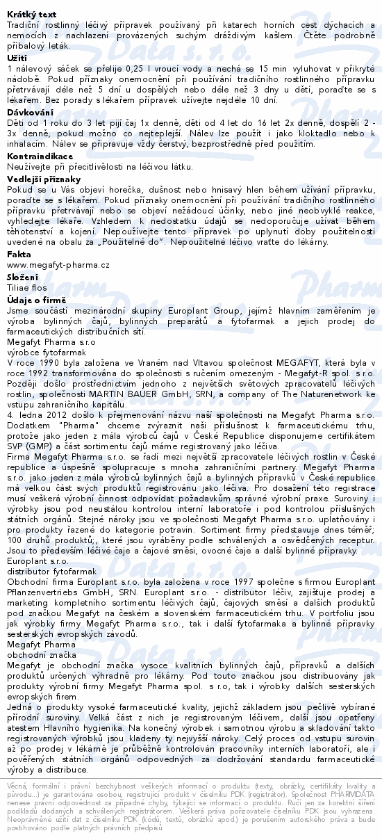 Tradiční rostlinný léčivý přípravek používaný při katarech horních cest dýchacích a nemocích z nachlazení provázených suchým dráždivým kašlem. Čtěte pozorně příbalový leták.