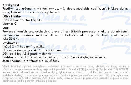 Pastilky jsou určené k mírnění symptomů, doprovázejících nachlazení, infekce dutiny ústní, krku nebo horních cest dýchacích.