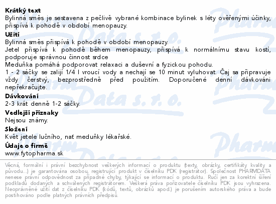 Gynastan Meno je bylinný čaj s příznivými účinky při menopauze. Pomáhá zmírnit její nepříznivé projevy. Doplněk stravy pro ženy.
