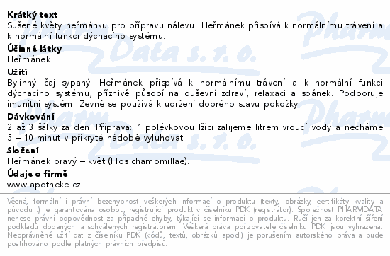 Sušené květy heřmánku pro přípravu nálevu. Heřmánek přispívá k normálnímu trávení a k normální funkci dýchacího systému.