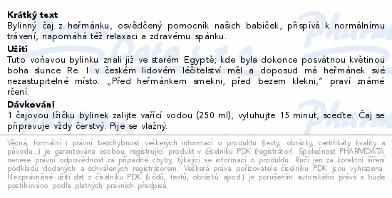 Bylinný čaj z heřmánku, osvědčený pomocník našich babiček, přispívá k normálnímu trávení, napomáhá též relaxaci a zdravému spánku.