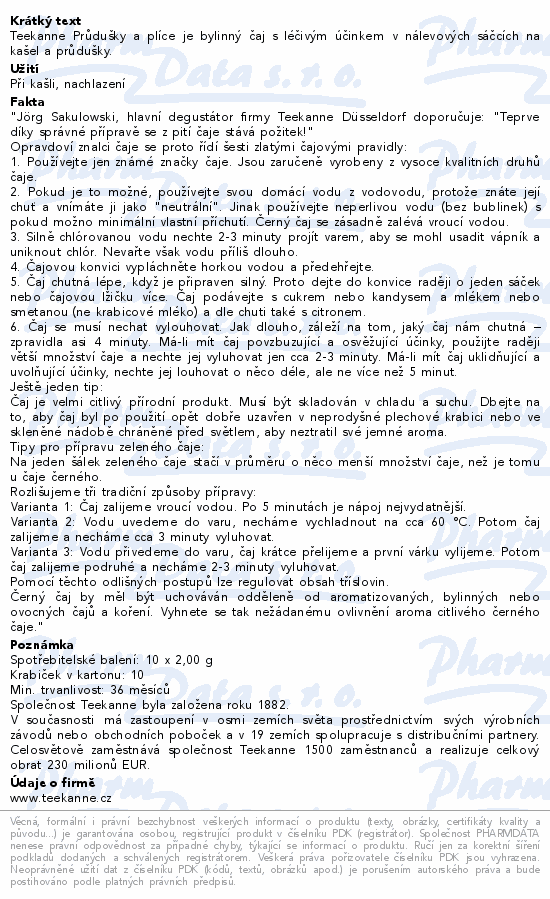 Teekanne Průdušky a plíce je bylinný čaj s léčivým účinkem v nálevových sáčcích na kašel a průdušky.