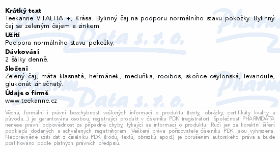 Teekanne VITALITA +, Krása. Bylinný čaj na podporu normálního stavu pokožky. Bylinný čaj se zeleným čajem a zinkem.