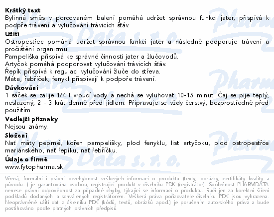 Bylinná směs v porcovaném balení pomáhá udržet správnou funkci jater, přispívá k podpře trávení a vylučování trávicích šťáv.