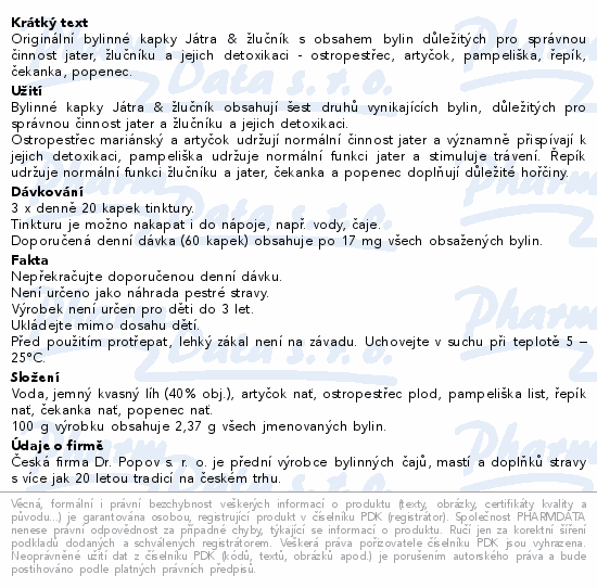 Dr.Popov Kapky byl. Játra-žlučník 50ml