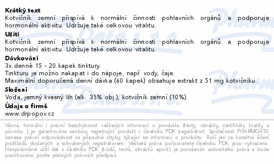 Dr.Popov Kapky byl. Kotvičník zemní 50ml