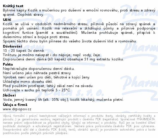 Bylinné kapky Kozlík s mučenkou pro duševní a emoční rovnováhu, proti stresu a zdravý spánek. Doplněk stravy.