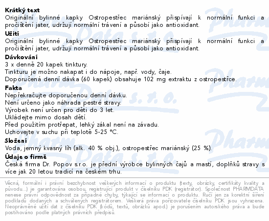 Dr.Popov Kapky byl. Ostrop. marián. 50ml