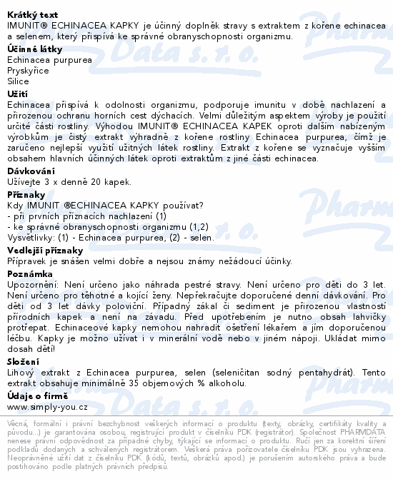 IMUNIT® ECHINACEA KAPKY je účinný doplněk stravy s extraktem z kořene echinacea a selenem, který přispívá ke správné obranyschopnosti organizmu.
